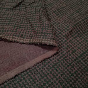 Tkanina Lniana 100% zielona w bordowe grochy